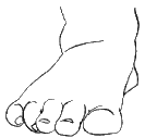 4th or 5th toe is flexed downward and twisted underneath the adjacent